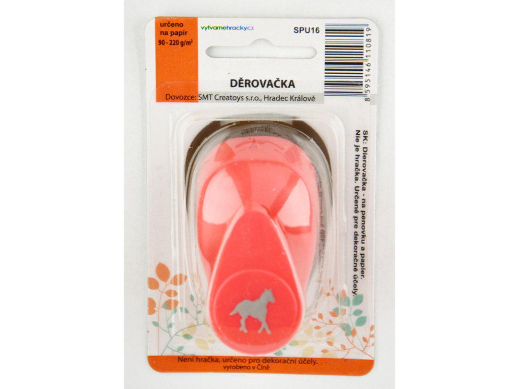 Děrovačka pro výtvarnou tvorbu. Postup: 1. pracujte s děrovačkou na pevné a rovné ploše. 2. vložte papír vhodné tloušťky - 90-220 g/m2 a zatlačte na páku statickým tlakem. Nikdy ne úderem na páku. 3. POUŽÍVEJTE POUZE NA PAPÍR. Děrovačky nikdy nepoužívejte na materiály potažené lepící vrstvou (například na samolepicí štítky), na pěnovku, na papírové ubrousky. Děrovačky nejsou vhodné pro děti do 3let.