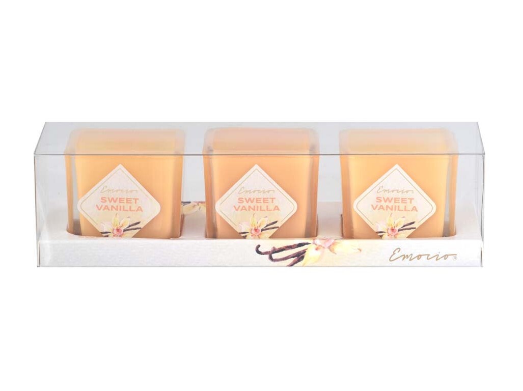 Emocio Sklo barevné 51x51x52 mm 3 ks Sweet Vanilla vonná svíčka