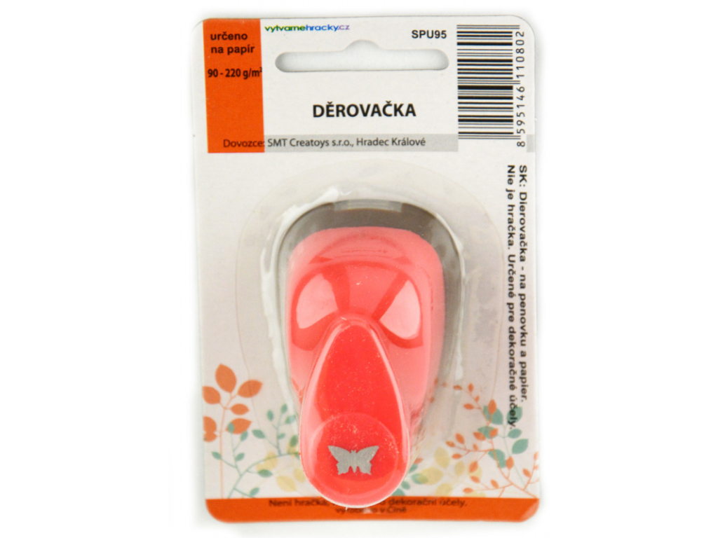 Děrovačka pro výtvarnou tvorbu. Postup: 1. pracujte s děrovačkou na pevné a rovné ploše. 2. vložte papír vhodné tloušťky - 90-220 g/m2 a zatlačte na páku statickým tlakem. Nikdy ne úderem na páku. 3. POUŽÍVEJTE POUZE NA PAPÍR. Děrovačky nikdy nepoužívejte na materiály potažené lepící vrstvou (například na samolepicí štítky), na pěnovku, na papírové ubrousky. Děrovačky nejsou vhodné pro děti do 3let.