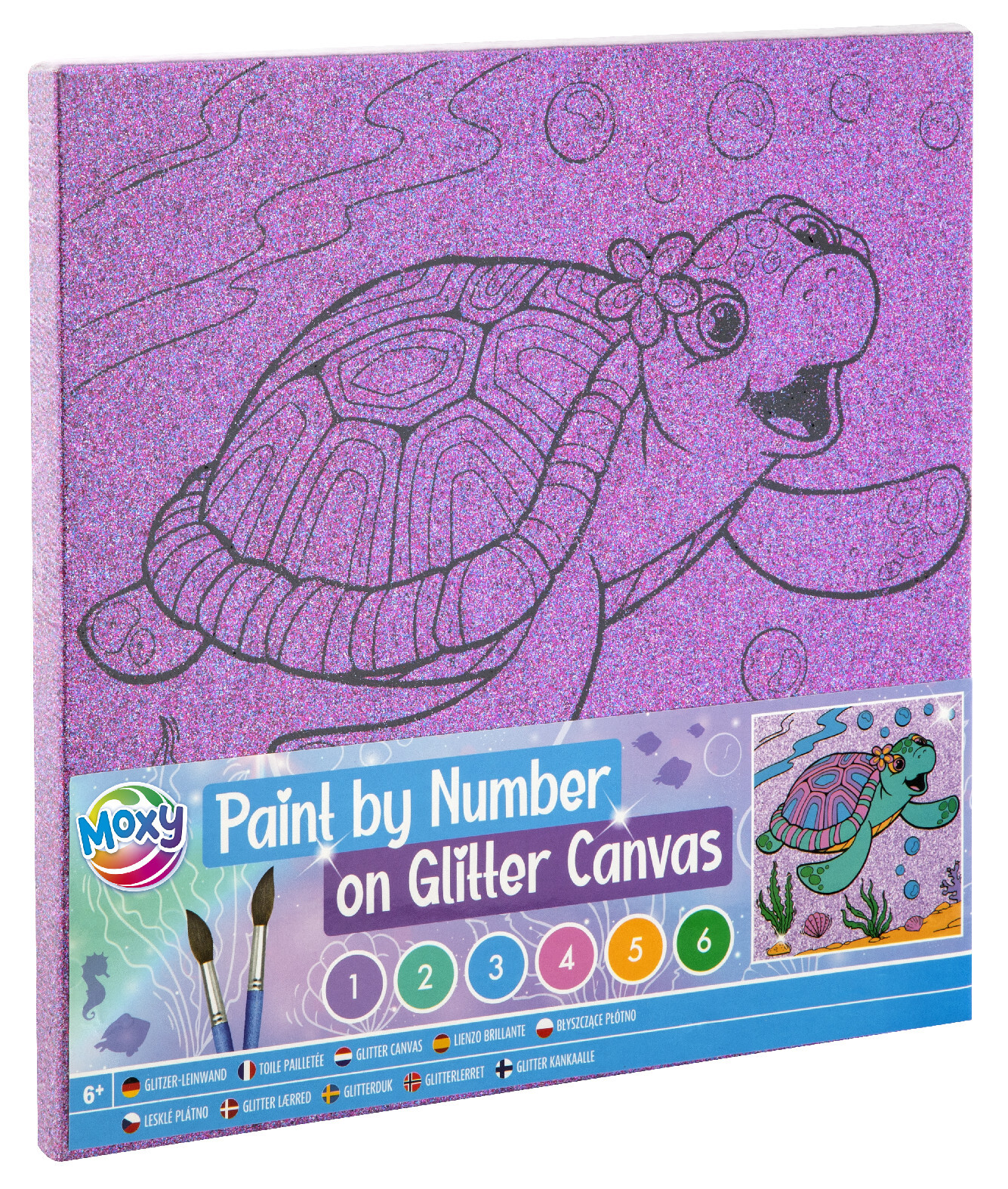 Malování na fialové glitrové plátno podle čísel - želva