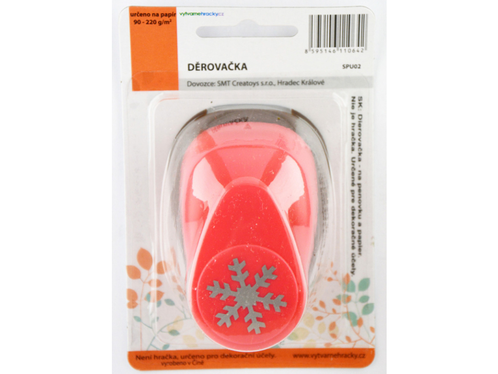 Děrovačka pro výtvarnou tvorbu. Postup: 1. pracujte s děrovačkou na pevné a rovné ploše. 2. vložte papír vhodné tloušťky - 90-220 g/m2 a zatlačte na páku statickým tlakem. Nikdy ne úderem na páku. 3. POUŽÍVEJTE POUZE NA PAPÍR. Děrovačky nikdy nepoužívejte na materiály potažené lepící vrstvou (například na samolepicí štítky), na pěnovku, na papírové ubrousky. Děrovačky nejsou vhodné pro děti do 3let.