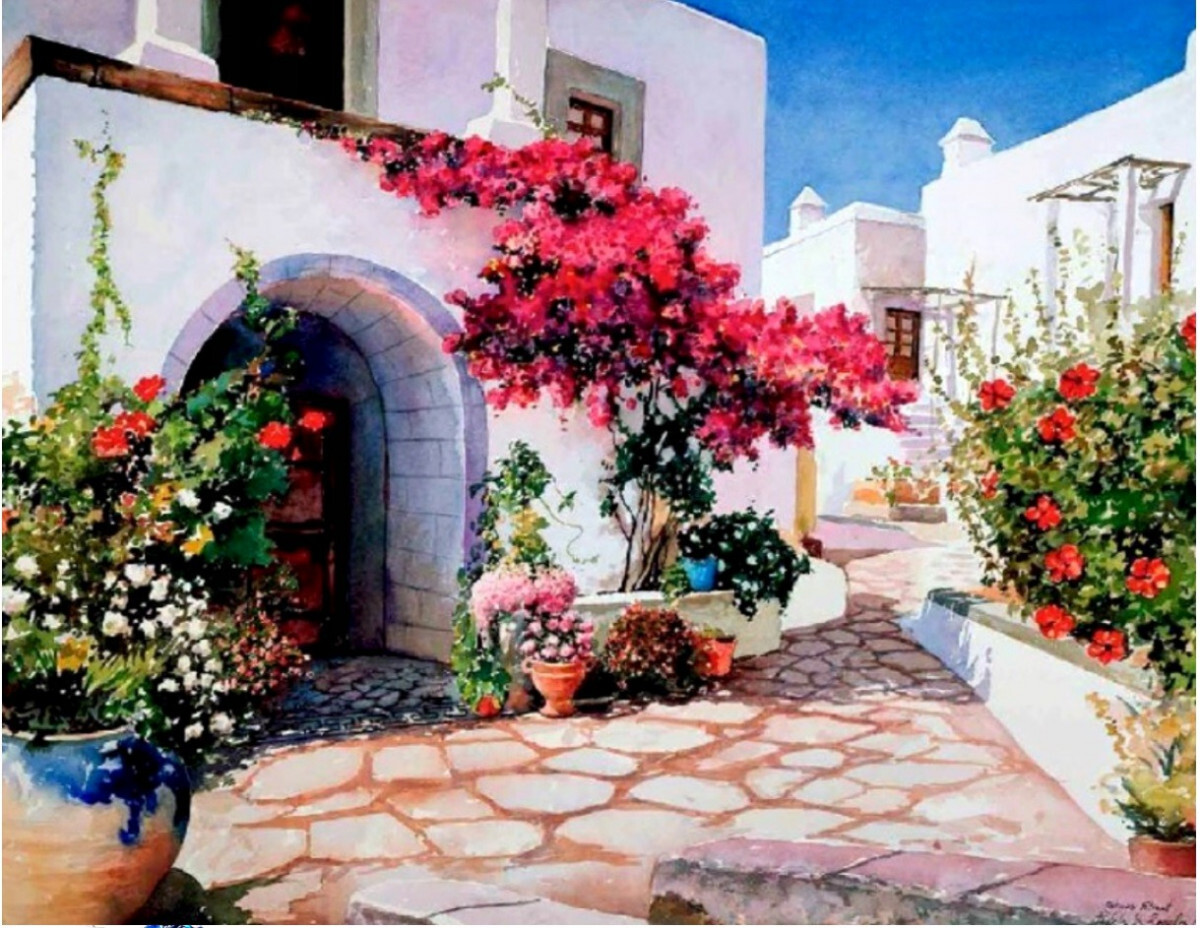 Diamantový obrázek - Výhled na červené keře 30x40 cm