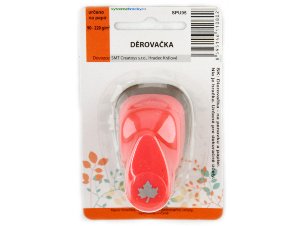 Děrovačka pro výtvarnou tvorbu. Postup: 1. pracujte s děrovačkou na pevné a rovné ploše. 2. vložte papír vhodné tloušťky - 90-220 g/m2 a zatlačte na páku statickým tlakem. Nikdy ne úderem na páku. 3. POUŽÍVEJTE POUZE NA PAPÍR. Děrovačky nikdy nepoužívejte na materiály potažené lepící vrstvou (například na samolepicí štítky), na pěnovku, na papírové ubrousky. Děrovačky nejsou vhodné pro děti do 3let.