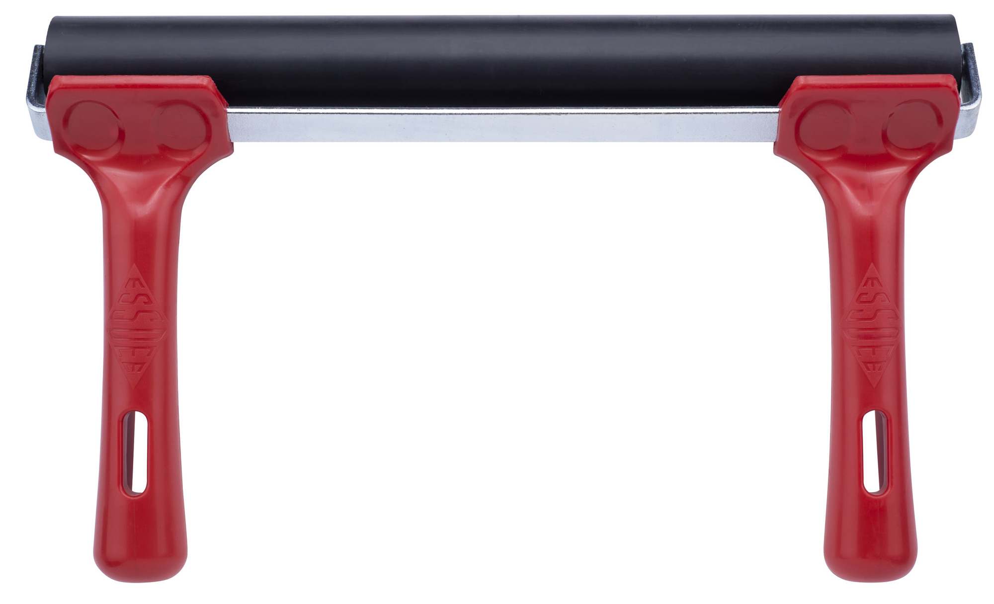 Gumový váleček na linoryt, 2 plastové rukojeťi, délka 25 cm, průměr válce 3 cm. Vyrobeno v Anglii. prečítať celé