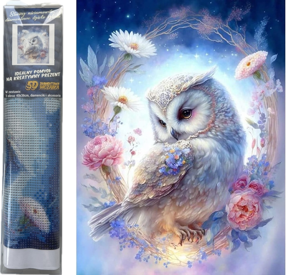 Objavte radosť a pokoj s unikátnym diamantovým obrázkom Biela sova v kvetoch. Táto kreatívna aktivita nielen zabaví, ale aj upokojí myseľ a prinesie vám krásnu dekoráciu do domácnosti.