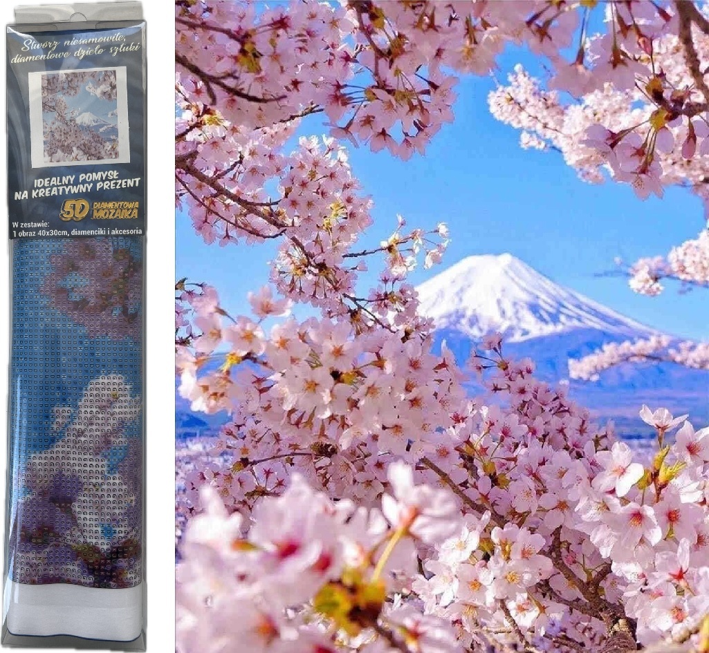 Diamantový obrázek - Třešňové květy a hora Fuji 30 x 40 cm