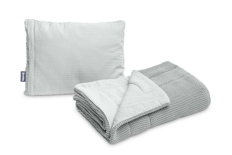 KOMPLET DO ŁÓŻECZKA DZIERGANY Z MUŚLINĄ SZARY
