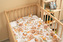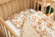 Komplet do łóżeczka jest wykonany z jednej strony z wysokiej jakości kolorowej bawełny, a z drugiej przyjemnego w dotyku velvetu. Składa się z płaskiej poduszki oraz kołderki z antyalergicznym wypełnieniem. Milutka tkanina przyjemnie otuli każdego maluszka.