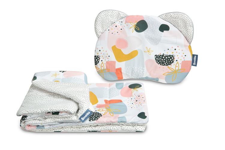 W skład kompletu do wózka wchodzi poduszka i kocyk z warstwą wypełnienia z włókniny silikonowej. Komplet idealnie sprawdza się w wózku, łóżeczku czy jako miękka mata dla maluszka. Sama poduszka może służyć jako przytulanka. Zestaw został wykonany z bawełny 100% z unikalnym wzorem. Wymiary:...
