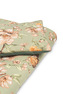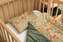 Komplet do łóżeczka jest wykonany z jednej strony z wysokiej jakości kolorowej bawełny, a z drugiej przyjemnego w dotyku velvetu. Składa się z płaskiej poduszki oraz kołderki z antyalergicznym wypełnieniem. Milutka tkanina przyjemnie otuli każdego maluszka.