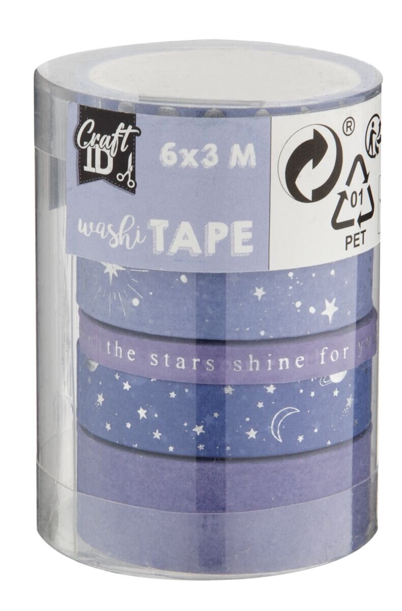 Dekorační lepicí páska - Washi pásky modré, 6 ks x 3 m