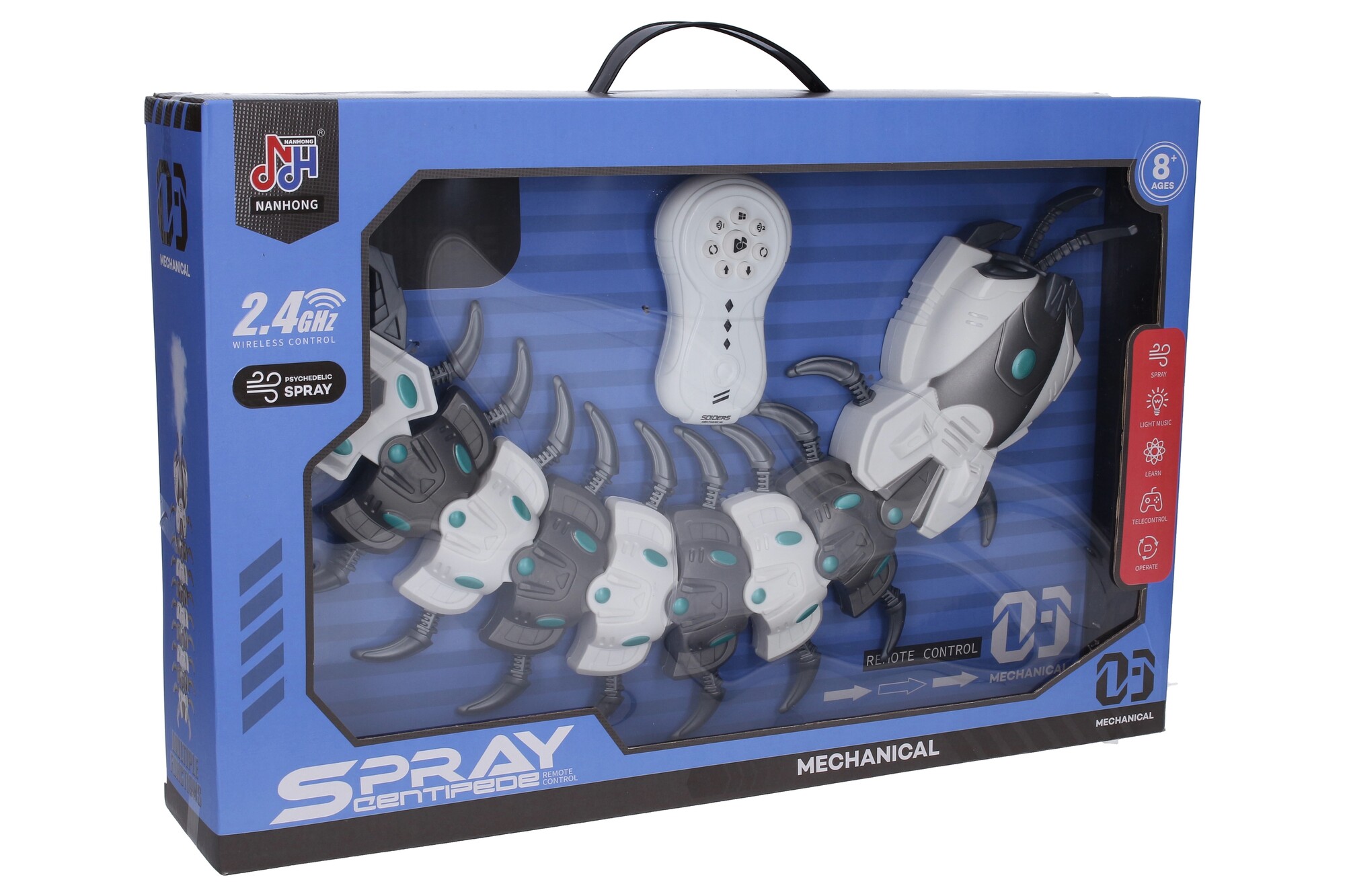 Housenka kouřící RC na dálkové ovládání. Rozměry 53x15x5 cm. Frekvence 2.4GHz. Světelné, zvukové a kouřové efekty. Tlačítka na ovladači - chůze dopředu a dozadu, otáčení vlevo a vpravo, 2 módy kouřových efektů, zvuk, demo režim. 3.7V bateriový pack do housenky součástí, 2xAA do ovladače nejsou součástí. Přepínač ON/OFF na spodní straně housenky. Nádržka na vodu na spodní straně hlavy. USB kabel, nádobka na vodu součástí.