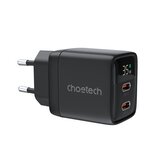 Ładowarka sieciowa Choetech PD6051 USB-C USB-C PD 35W GaN z wyświetlaczem - czarna
