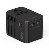 Ładowarka podróżna GaN Choetech PD6045 USB-C USB-A 45W z wtyczkami USA EU UK AU - czarna