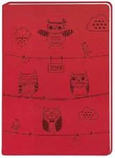 Terminplaner Lederlook A6 Rot (Eulen) 2019