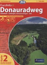 BVA Radreisekarte EuroVelo 6, Donauradweg - Radolfzell - Tuttlingen, Donaueschingen - Ulm