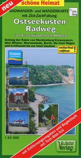 Ostseeküsten-Radweg von Travemünde nach Ahlbeck 1:50 000 Radwander- und Wanderkarte mit Zick-Zack-Faltung