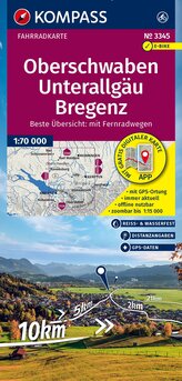 KOMPASS Fahrradkarte 3345 Oberschwaben, Unterallgäu, Bregenz 1:70.000