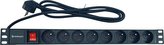 Rozvodný panel Conexpro 19" 8x230V, 16A, černý, kabel 1,4m, hliníkový