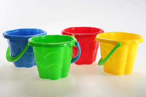 Kyblík vnka plastový o velikosti cca 11,5 cm a 19 cm ( šíře dole a nahoře ) a výšce cca 15 cm.Věk 2+ prečítať celé