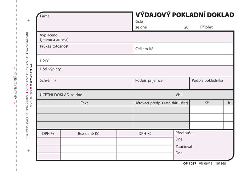 - Obsah: neprázdne listy na vyplňovanie údajov o výdaji