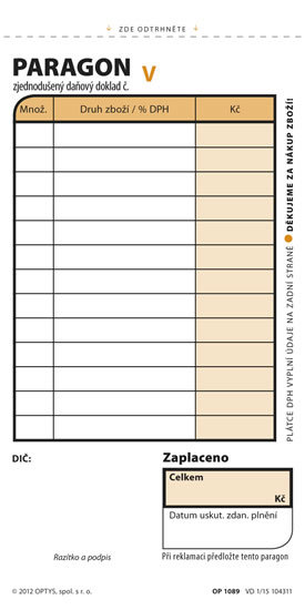 Paragón obchodný, 7,5 × 15 cm, 2 × 50 listov, číslovaný, NCR