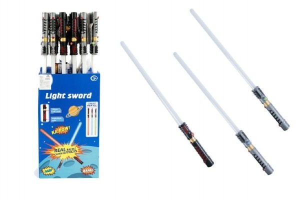 Meč svítící plast 72cm na baterie měnící zvuk dle pohybu se světlem 3 barvy 24ks v boxu