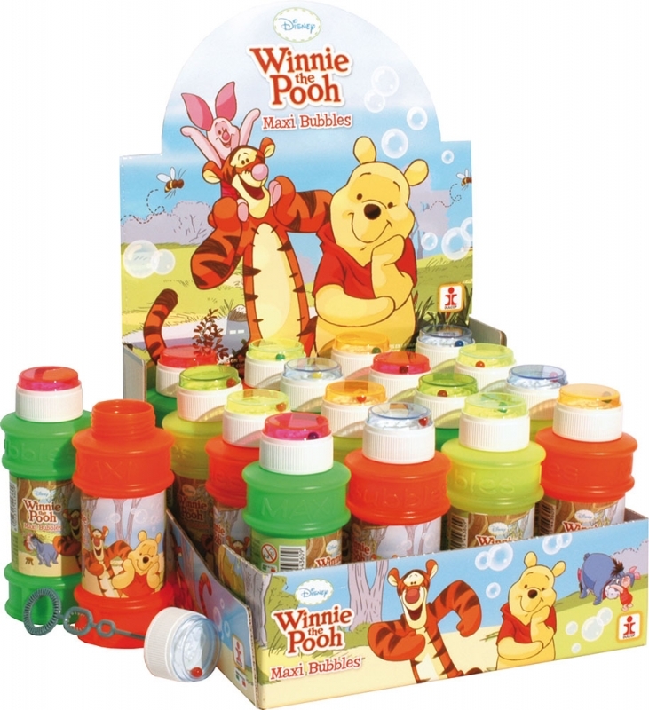 Bublifuk s motivem Medvíka Pú o obsahu 175 ml. Součástí barevného víčka je hra a foukátko. Lze zakoupit i jako celý display, kde je 16 ks. prečítať celé