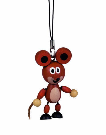 Dřevěný přívěšek na klíče s figurkou myšky. Výrobek je zdravotně nezávadný.