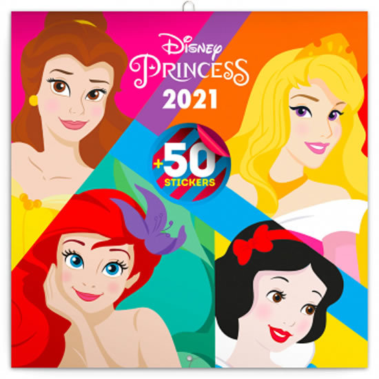Kalendář 2021 poznámkový: Princezny, s 50 samolepkami, 30 × 30 cm (česky)