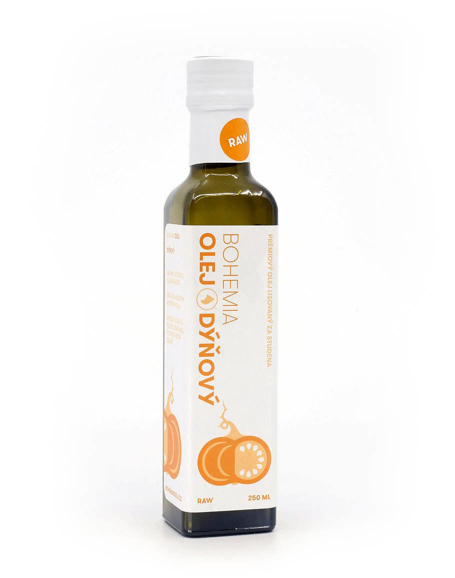 Bohemia Olej Dýňový je temně zelený s plným aroma dýňových jader a dezertní chutí. Lisujeme jej z neopražených semínek v RAW kvalitě. Zkuste do polévky, ale i k teplé zelenině či do pomazánky. prečítať celé