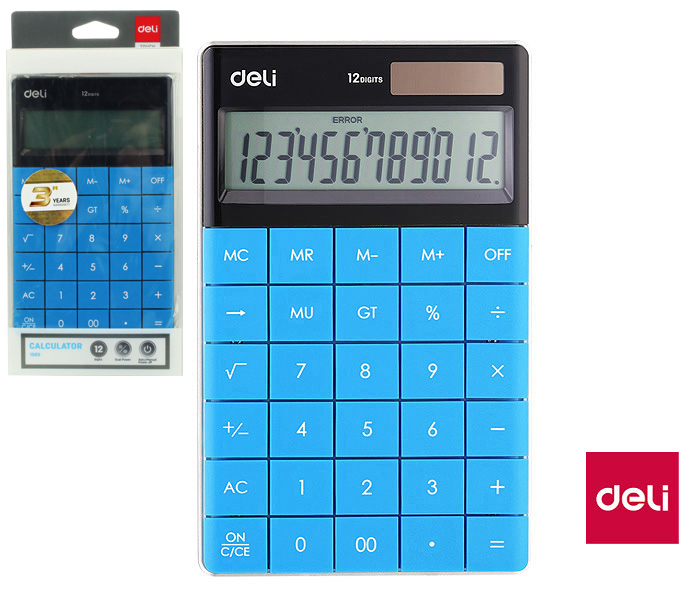 Jednoduchosť a praktickosť v jednom malom zariadení. Stolová kalkulačka DELI E1589 v modrom dizajne vám uľahčí rýchle výpočty a pritom zaberie len minimum miesta na pracovnom stole.