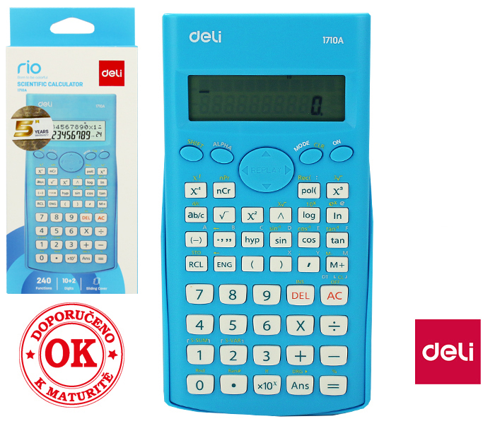 vhodná k maturitě- 10+2 místný displej- velký displej- automatické vypnutí- plastová tlačítka- baterie- součástí je kryt- 2 řádkový displej- 240 funkcí- funkce ANS- zlomková početní funkce- zlomková početní funkce- výpočet běžné odchylky- transformace souřadnic- editace dat- průběžný výpočet-... prečítať celé