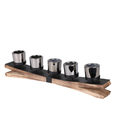 DOCHTMANN Svícen dřevo, sklo, kov, 54x7x13cm, 5 svíček, tvar lodička