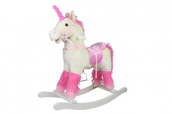 Heboučký houpací kůň po zmáčknutí ouška řehtá a hýbe ocáskem. Po zmáčknutí druhého ouška vydává zvuky klapotu podkov při klusu a hýbe ocáskem. Baterie se vkládají do pouzdra umístěného na bříšku. Hračka pomáhá dítěti rozvíjet koordinaci pohybů a podněcuje jeho představivost. Návod na sestavení a vložení baterií je uvnitř krabice. 3ks baterií AA nejsou součástí balení. Nosnost 50 kg.