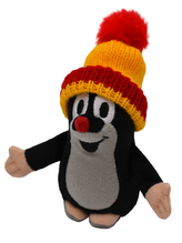 Krtek 10 cm, kulich modro-žlutý, plyšový přívěsek na karabince