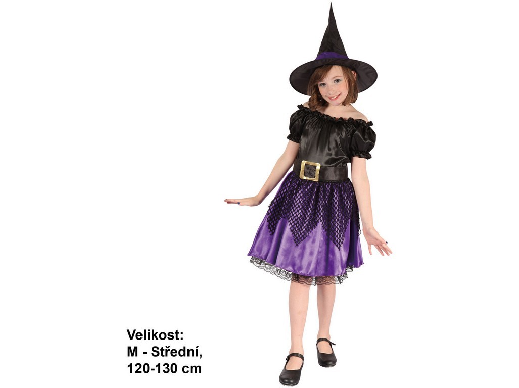 Karnevalový kostým - Čarodějnice.Velikost: střední(120 - 130 cm).Kostým je vhodný pro holky ve věku 5-9 let.Balení obsahuje:- šaty- klobouk- pásek.Neobsahuje:- boty. prečítať celé