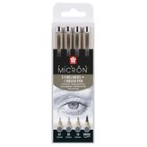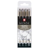 Sakura sada Pigma Micron Fineliners - 6 šedých technických popisovačů, 2 pěnové štětce