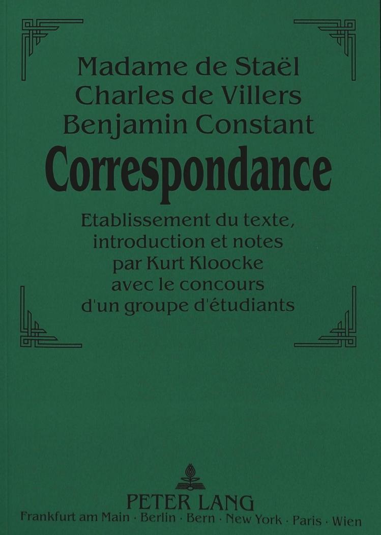 Madame de Staël - Charles de Villers - Benjamin Constant:. Correspondance. (francouzsky)