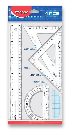 - trojuholník 60°/21 cm - nevyhnutný pomocník pre správne uhly a konštrukcie
