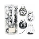 Vánoční baňky stříbrné s výplní mix - 5cm, sada 24ks