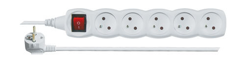 Prodlužovací přívod 5 zásuvek 5m EMOS P1515 - 5 zásuvek s vypínačem ~250V / 10A max. - délka kabelu 5m - barva bílá - prodejní obal: 1ks, závěs prečítať celé