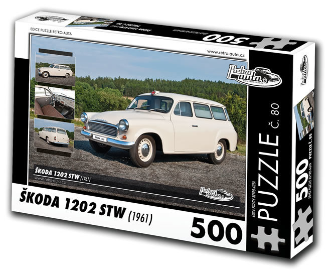 Retro auta Puzzle č. 80 - ŠKODA 1202 STW Sanitní vůz (1961) - 500 dílků