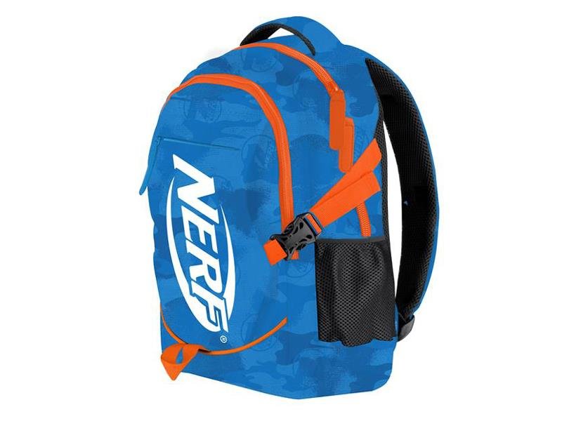 Batoh školní HASBRO BRONCO NERF modro-oranžový Funkční dvoukomorový školní nebo sportovní batoh- 2 komory uzavíratelné zipem- kapsa na počítač- kapsa s organizérem- další malá kapsa na zip na přední straně- dvě kapsy na boku, jedna se síťkou, druhá se zipem- funkční vstup...