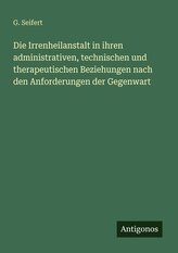 Die Irrenheilanstalt in ihren administrativen, technischen und therapeutischen Beziehungen nach den Anforderungen der Gegenwart