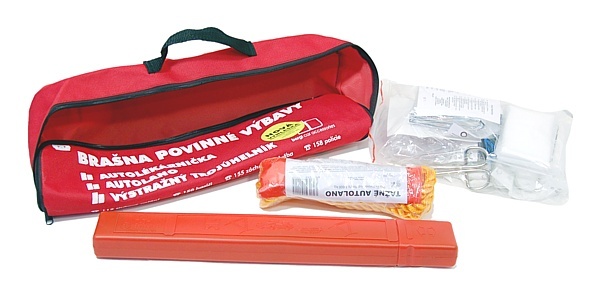 Brašna obsahuje: tažné lano; výstražný trojúhelník a autolékárničku vel. I.