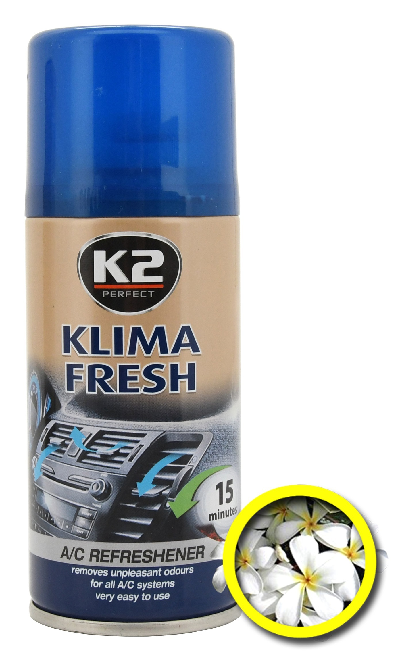 Osvěžovač vzduchu K2 KLIMA FRESH Flower 150ml Vysoce efektivní a snadno použitelný prostředek pro osvěžení vzduchu ve vašem autě s vůní Květin.Celý proces netrvá více než několik minut. Vhodné k použití pro všechny druhy klimatizace.Odstraňuje pachy plísní, kouře a...