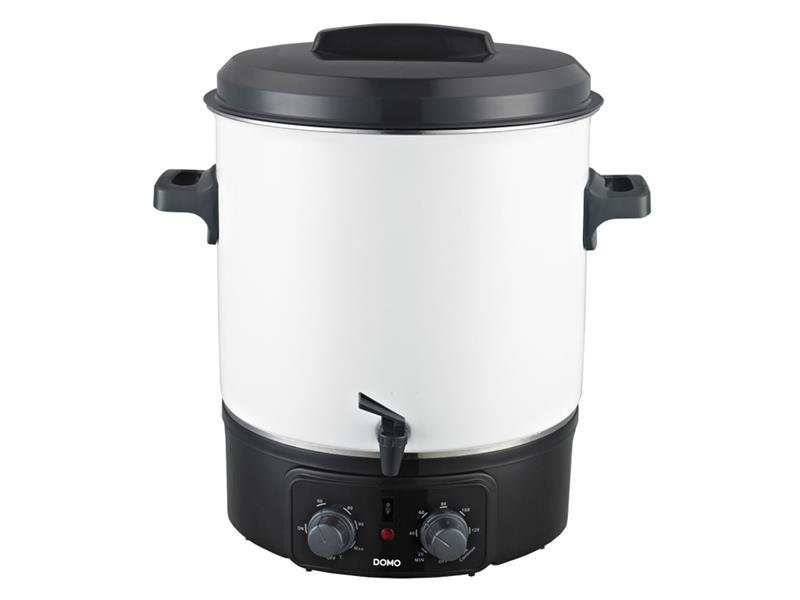 Hrnec zavařovací DOMO DO322W Smaltovaný zavařovací hrnec s plastovým výpustným kohoutem je použitelný jak na zavařování, tak jako automat na horké nápoje.Parametry produktu:- ½“ plastový výpustný kohout, použitelný též jako automat na teplé nápoje- časový spínač...