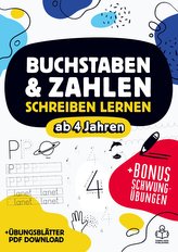 Buchstaben und Zahlen schreiben lernen ab 4 Jahren - mit Bonus Schwungübungen und extra Übungsblätter als PDF Download.