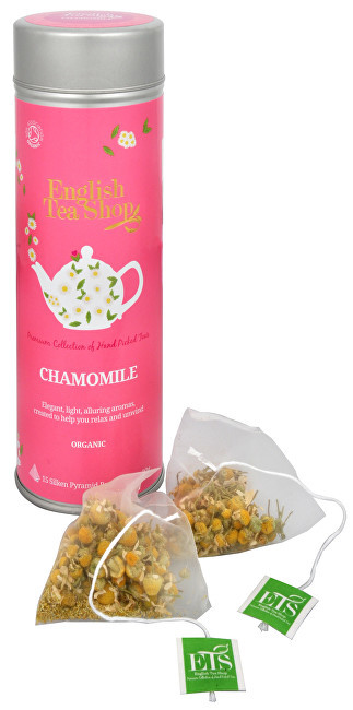 Zklidňující heřmánek, certifikovaný produkt ekologického zemědělství, Control Union Certifications Ltd., bezkofeinový nápoj je dokonalým prostředkem k nervovému zklidnění, protože je dokázáno, že podporuje uvolnění a ulevuje od stresu. Je skvělý v kteroukoli denní nebo noční dobu. Váš ideální partner pro spaní.